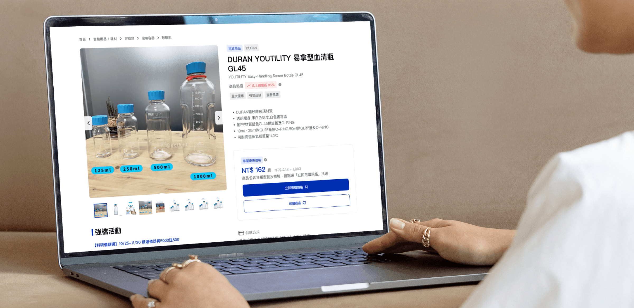 尤其當使用者必須在十幾種相似型號中,選出唯一能配合實驗架的燒杯時,他不該還得費心搞清楚資訊在哪,而應該能直接聚焦、快速決定。