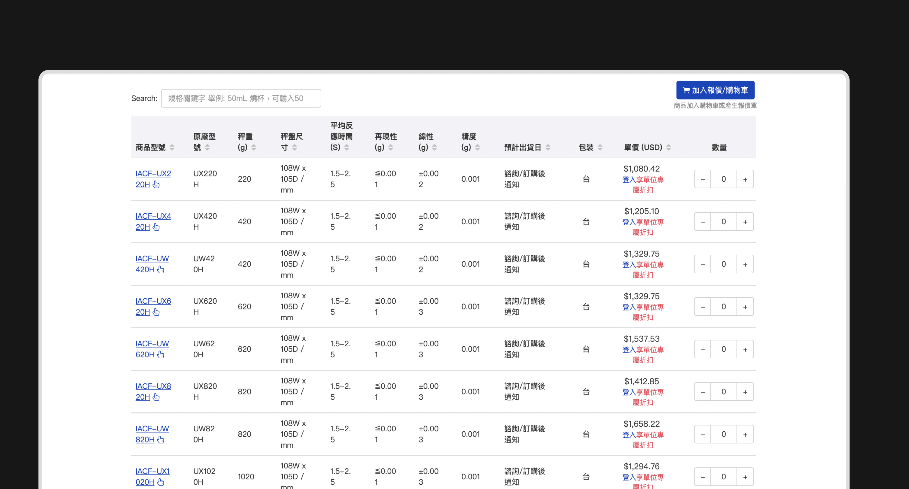 我們將常見規格(如容量、材質)轉化為可操作的篩選器,並依使用頻率與篩選邏輯重新排序,放置在表格上方,讓使用者能快速縮小範圍、聚焦選擇。不再需要逐一滑動十幾個型號,大幅減少比對與操作時間。